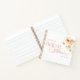 Custom-designed bridal shower guest notebook featuring elegant calligraphy with sunny yellow and orange watercolor floral design.