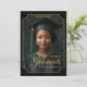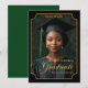Celebrate a milestone moment with this elegant "Class of 2026" portrait-style graduation announcement. Featuring a dramatic black background, refined gold accents, and an ornate frame design, this vertical layout showcases the graduate’s photo in a timeless, formal presentation. Personalized with the graduate’s name, school, and class year, this design creates a polished keepsake perfect for honoring high school or college achievements. Ideal for sharing with friends and family, this sophisticated graduation announcement highlights pride, accomplishment, and the beginning of a new chapter. Back Background is dark green.