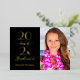 Elegant black and gold graduation party invitation features a gold foil typography design which reads: "class of [YEAR] Graduate" on a black background. Replace the sample photo with one of your grad and customise the year and name. The black back of the invite features the word "celebrate" in a gold coloured (not foil) script font. Replace the gold coloured sample text for your graduate and event. Personalise it for any graduate: high school, college, graduate school, law school, medical school, or trade school. If you have trouble with your photo's placement or sizing, please click the "Customise" button and use the design tool to enlarge/shrink or move it.