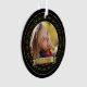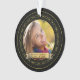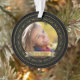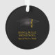 Graduation keepsake ornament featuring a swirled flourish circular frame and banner in black and gold tone for you to personalise with your photo, name and class year on front. On back is our original grad cap illustration and additional space for you to personalise with your school name and other special text such as "Class President" or "Class Valedictorian".