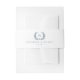Please check our elegant wedding invitation belly bands, featuring a stunning dusty blue and grey floral wreath with last name initial. Personalise these bands with the names of the bride and groom to infuse a touch of individuality into your wedding stationery collection.