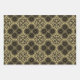 Set of three wrapping paper sheets with different patterns. Each pattern features faux gold ornaments on a black background.