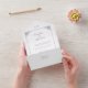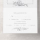 This classic suite of historic decorative designs is inspired by the 18th century etchings of French court painter Alexis Peyrotte, featuring a light grey on white frame of acanthus leaves, ornate scrolls, flowers and leaves. This collection is the perfect complement to an elegant, formal and romantic wedding. This convenient all-in-one format includes a detachable RSVP/Response card.