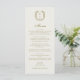 Elegant Classic Golden Crest Monogram Wedding Menu. A classic wedding menu with an elegant design features a trendy ivory backdrop and classy golden text. The wedding menu is decorated with a beautiful monogram. It is perfect for wedding celebrations in any style.