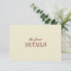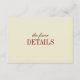 Elegant Classic Ivory & Wine Red Wedding Details Enclosure Card. A minimalistic and formal wedding details enclosure card, designed in cream/beige and wine red, with "the finer details" in elegant script lettering. Customize with your reception details, accommodations info, and wedding website on the back.