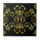 Classic elegant ceramic tile design featuring elegant swirly faux gold ornaments on a black background.