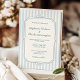 This wedding invitation features refined blue and beige stripes paired with an ornate frame that brings a sense of quiet luxury and timeless romance. The subtle palette and balanced typography create a look that feels effortlessly elegant, ideal for formal ceremonies, coastal celebrations, or classic estate weddings. Customize every detail to reflect your unique love story and personal style.