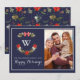 Elegant Classic Monogram Floral Happy Holiday Card