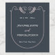 Treat your wedding guests with a bottle of wine with the personalised wine label. Featuring a beautiful blush pink floral frame with navy blue background, this elegant customisable wine label will make your guests smile. Show your cheers.