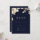Elegant classic navy blue gold floral RSVP Invitation