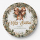 Elegant classic pastel green gold Christmas bells Paper Plates