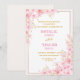 This elegant wedding invitation features a soft pink cherry blossom design with delicate golden accents, creating a romantic and luxurious look. The floral arrangement frames the content area beautifully, making it perfect for spring or nature-inspired weddings.