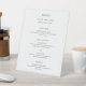 Elegant wedding menu pedestal sign featuring a simple and classic design with traditional serif and elegant script fonts.