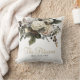 Elegant wedding anniversary stylish custom throw pillow keepsake gift featuring a beautiful white ivory peonies greenery bouquet with seasonal branches, foliage, and leaves. ++++++++++ Easy to personalise with your text! +++++++++++++ Suitable also for newlyweds or as a housewarming gift.