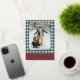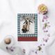 This holiday greeting card stands out with its elegant and unique design. It features a timeless "Happy Holidays" greeting printed in real gold foil, customisable to your preference, on a teal blue, white, and maroon red plaid pattern design. The front offers space for your family name, photo, and custom seasonal greeting, while the back is perfect for adding a personalised seasonal message or poem. It's a stylish way to send your holiday wishes.