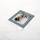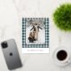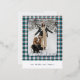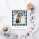 This holiday greeting postcard stands out with its elegant and unique design. It features a timeless "Happy Holidays" greeting printed in real gold foil, customisable to your preference, on a teal blue, white, and maroon red plaid pattern design. The front offers space for your family name, photo, and custom seasonal greeting, while the back is perfect for adding a personalised seasonal message or poem. It's a stylish way to send your holiday wishes.