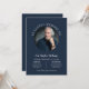 Elegant Clean Navy Round Photo Memorial Funeral Invitation
