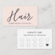 Elegant customisable loyalty card template with rose white background and handwriting bold text. Modern clean design, perfect for hair stylist, hairdresser. You can match it with business card - with same design.