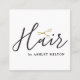 Elegant customisable business card template with FAUX gold scissors icon /white background and handwriting text. Modern clean design, perfect for hair stylist, hairdresser.