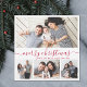 Elegant Modern Calligraphy Minimalist Snowflakes White and Red 4 Photo Collage Merry Christmas Calligraphy Script Holiday Card. This festive, mimimalist, whimsical four (4) photo holiday card template features a pretty photo collage and says „Merry Christmas”! The „Merry Christmas” greeting text is written in a beautiful hand lettered swirly swash-tail font type in red and white. On the reverse side pretty snowy snowflakes in red and white. Pretty greeting card for your family and friends in Christmas Holiday season.
