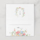 Add a romantic, garden-inspired touch to your reception tables with this wildflower wedding place card. Delicate watercolor florals in soft blush, blue, and golden hues create a timeless botanical look, while the coordinating monogram crest adds an elegant, personalized detail.