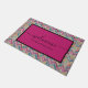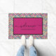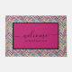 Elegant welcome Doormat with a black script on a pink background embellished by a colourful chevron border. Personalise with your family name or text.