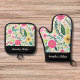 Elegant Colourful Flowers & Kraft Personalised Gif Oven Mitt & Pot Holder Set