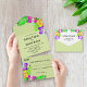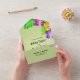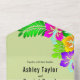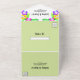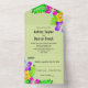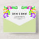 This elegant tropical wedding invitation is perfect for a modern summer wedding. The simple design features bloom yellow, purple, and pink flowers with elegant black typography on a sage green background.