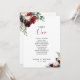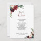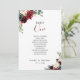 This elegant colourful table number 1 seating chart is perfect for a modern wedding. The design features hand-painted pink, blush, burgundy, red, maroon and blue roses and peonies with green foliage neatly assembled into a charming bouquet.
