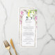 Geometric gold frame wildflower wedding reception menu. Long. Toasts on back