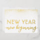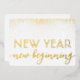 Send family and friends joyful upbeat wishes for the year to come with elegant "New Year New Beginning" real foil holiday cards. All wording on this template is simple to personalise. Colours and fonts are also easy to change with the Zazzle design tool. The front side of this card is printed with real metallic gold foil lettering and cascading confetti dots. The white and gold design also features modern handwritten style script calligraphy, chic minimalist vintage typography, and a personalised message on back. Family and friends will love displaying this elegant and stylish customised card.