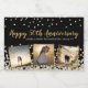 Elegant custom anniversary design featuring gold and silver confetti over a black background, modern script typography with the words "Happy 50th Anniversary" (in gold), your names and date (in silver), and three of your favourite photos framed in metallic gold foil.