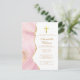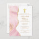 Elegant pink and gold agate decorate this pretty personalised confirmation postcard invitation for a girl's Christian ceremony celebration. Customise with a name and details under the beautiful cross for a chic religious party invite.