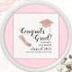 Create unique graduation napkins with saying Congrats Grad, year and name templates decorated with graduate's cap and diploma illustrations in rose gold colours. Typography is in black colour on this design.