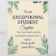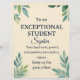 Featuring a soft parchment-style background with watercolor leaves and gold accents, this card delivers a heartfelt message: “To an EXCEPTIONAL STUDENT – Your hard work, growth, and positivity have made an impact. Keep up the great effort.”