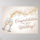An elegant and celebratory image featuring a beautiful greeting card design. It shows two champagne flutes toasting, accompanied by a festive stream of golden glitter and delicate petals. The text "Congratulations on your Wedding!" is written in a graceful, flowing script.