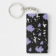 This keychain features an abstract design of irregular shapes resembling soft lilac and black spots on a white background, blending creativity with minimal elegance.