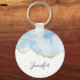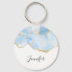 A key chain with a beautiful icy blue agate design with faux gold glitter accents.