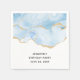 Paper napkins with a beautiful icy blue agate design with faux gold glitter accents.