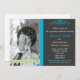Elegant, cool photo university graduation announcement, ceremony, party invitation. For university, college graduates. with degree information. blue and colourful stars.