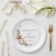Immerse yourselves in natural elegance with our Copper & Earthy Botanical Wedding Paper Plates with your names & date.