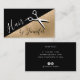 This modern hairstylist business card design features scissors, faux copper gold & black background and elegant calligraphy font.