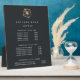 Elegant plaque with easel displays your salon services or price list in classic white lettering on a rich soft black background adorned with a tropical faux copper foil hibiscus flower illustration. Includes three customizable headings and body text fields. To adjust layout, enter your text and then use the Customize function to change positioning and font sizes.