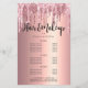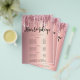 This gorgeous hair & makeup price list design features faux pink & copper rose gold dripping glitter metallic texture and elegant calligraphy font.