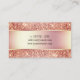 Modern and stylish business card design featuring faux copper rose gold glitter drips and elegant calligraphy font.