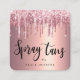 This gorgeous spray tans business card design features faux pink & copper rose gold dripping glitter metallic texture and elegant calligraphy font.