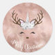 Elegant copper rose gold marble unicorn reindeer classic round sticker