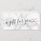 Modern and elegant gift certificate for hairstylists with faux copper rose gold scissors, white marble background and elegant calligraphy font.