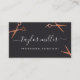 This modern hairstylist business card design features faux copper rose gold scissors, black background and elegant calligraphy font.