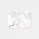 Modern and elegant post-it notes for hairstylists with faux copper rose gold scissors, white marble background and elegant calligraphy font.